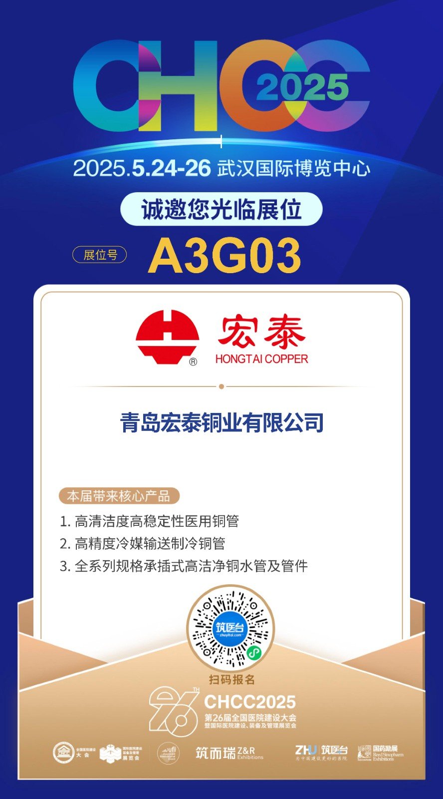 2025年5月24日至26日,由筑醫臺、國藥勵展、中國醫學裝備協會醫院建筑與裝備分會、筑而瑞聯合多家權威機構共同舉辦的“第26屆全國醫院建設大會暨國際醫院建設、裝備及管理展覽會”(簡稱CHCC2025)將在武漢國際博覽中心隆重召開。